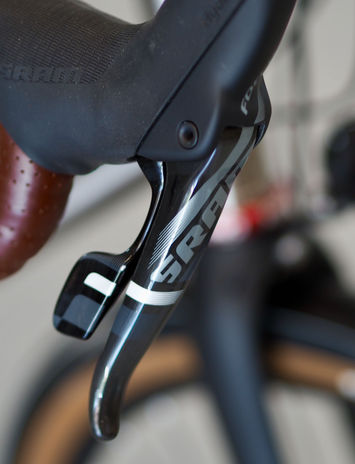 Smooth, precise shifting is achieved through SRAM Force 22 mechanical shift levers paired with the Hibox conversion system, delivering intuitive control and reliable gear changes across rough gravel terrain and long-distance adventure rides - combining familiar cockpit ergonomics with the durability and consistency of the Pinion gearbox.